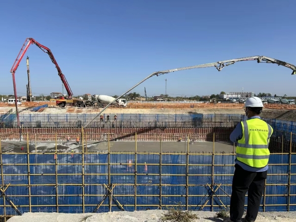 為保證垃圾坑底板大體積混凝土澆筑節(jié)點(diǎn)順利完成,項(xiàng)目部提前策劃、精心組織,克服了項(xiàng)目土建施工難度大、工藝復(fù)雜及協(xié)調(diào)工作量大等重重困難,通過(guò)嚴(yán)格的施工方案審批制度、周密的施工策劃、合理的人員組織、精細(xì)的施工部署以及先進(jìn)的技術(shù)指導(dǎo),全體參建人員攻堅(jiān)克難,圓滿完成該節(jié)點(diǎn)任務(wù)。此次底板混凝土連續(xù)澆筑、一次成型,總澆筑量達(dá)4300方,充分展示了公司在生活垃圾焚燒發(fā)電領(lǐng)域的工程技術(shù)實(shí)力,得到了業(yè)主方的高度肯定。